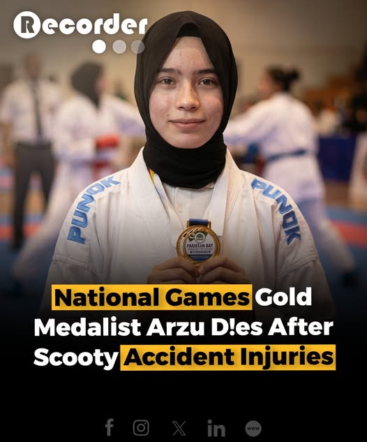 A tragic accident has claimed the life of national female karate player Arzoo Haider, a celebrated athlete who previously won gold and silver medals at the National Games held in Quetta.